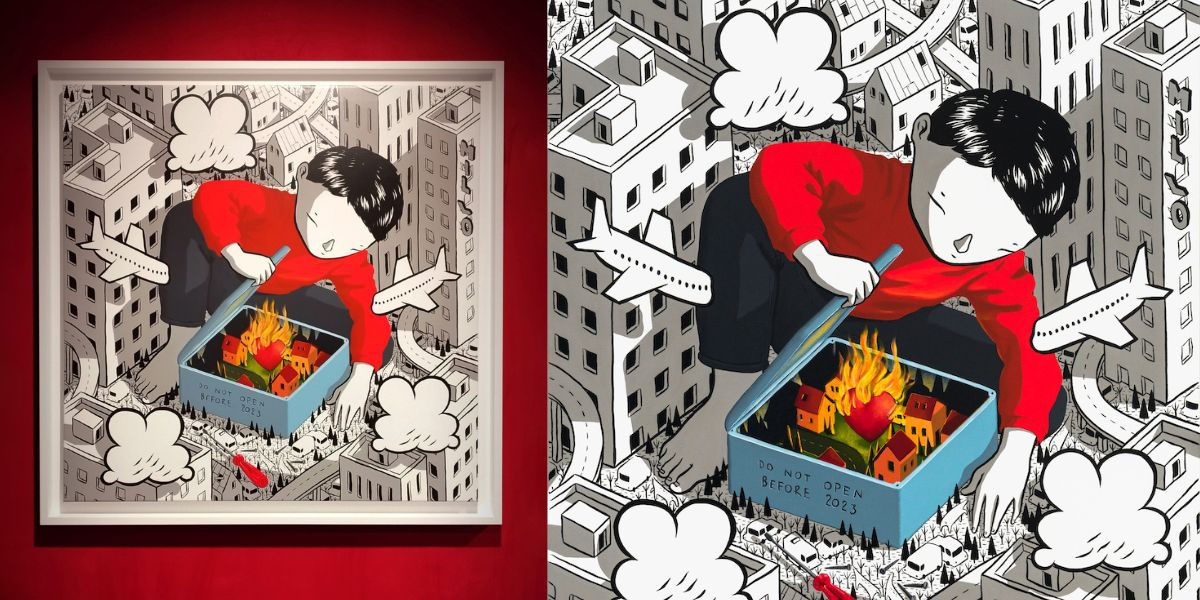 In sharing his past, the artist has selected what has imprinted itself in his heart forever, and with the series “Do Not Open Before 2023" Millo draws inspiration from 13 memories, some are very personal snapshots and others are flash memories, which can therefore be traced back to a striking event that marked our history. In this analysis, which takes its cue from research into the psychology of memory, MILLO elaborates, along with a selection of moments dear to him, some of the events that have marked humanity and shaped the course of time, showing them to us through the artist's subjective view and letting them roll around on our table, like marbles out of a bag.