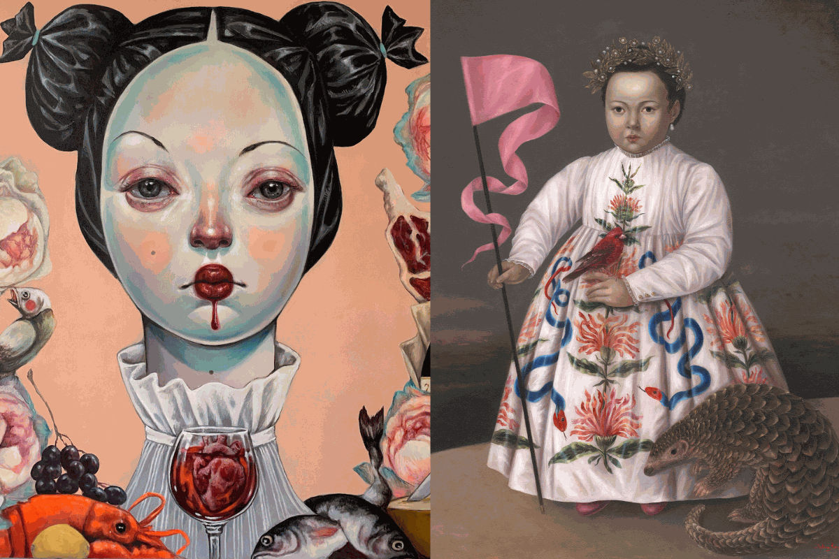Filipino-American painter Fatima Ronquillo transports us to a realm infused with the magical essence of art history. Her works, abundant with floral and bucolic details, introduce us to ethereal figures and enchanting creatures that awaken wonder within us. These paintings evoke a world where time and space are intangible, inviting us to explore new dimensions of existence.