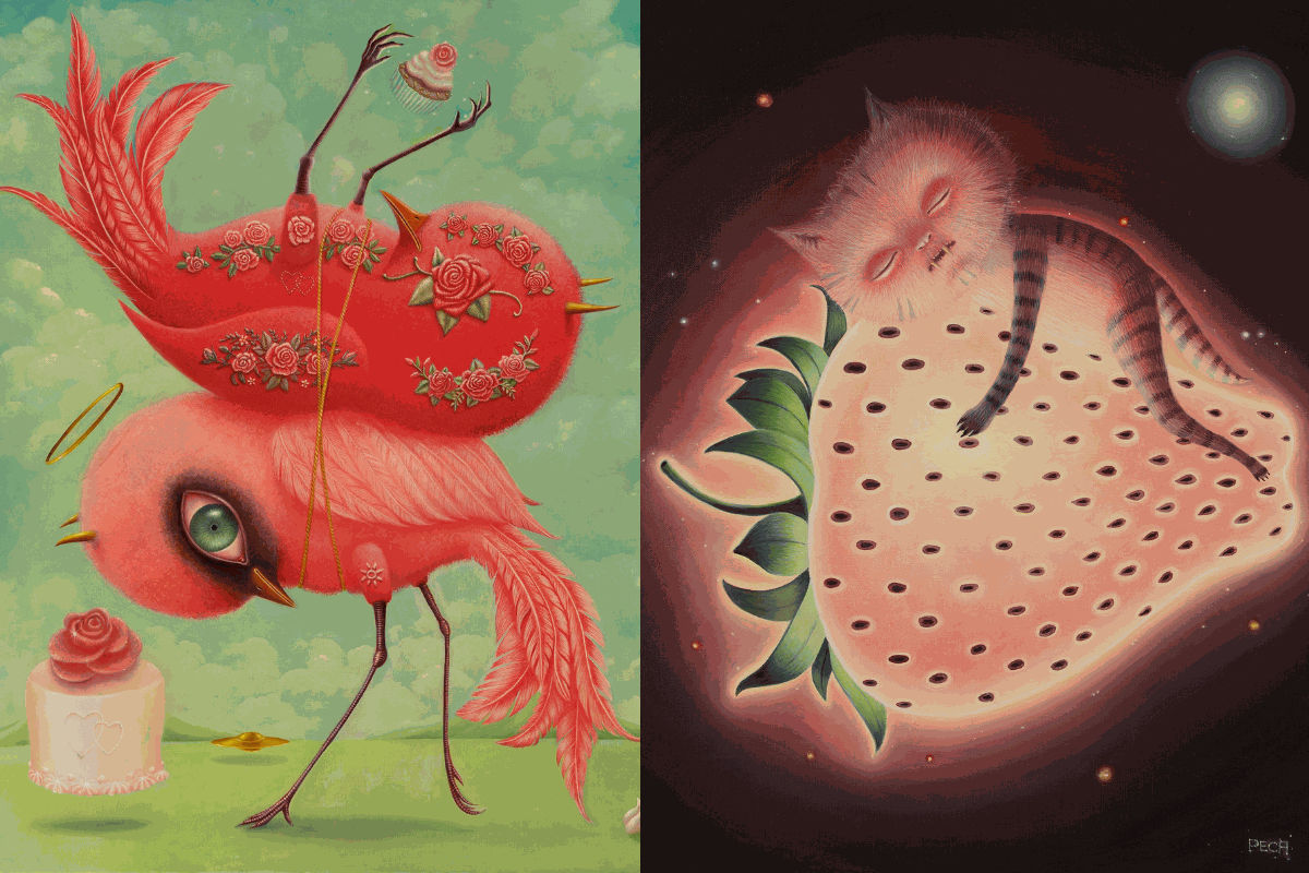Peca, the Argentine surrealist painter, invites us to escape into a fantastical world dominated by imagination. With playfulness and visionary creativity, she draws inspiration from nature, particularly birds, creating art that embraces the pink color palette. Through her enchanting paintings, Peca encourages us to explore the boundary between reality and fantasy, urging us to dream and rediscover a sense of wonder in our everyday lives.