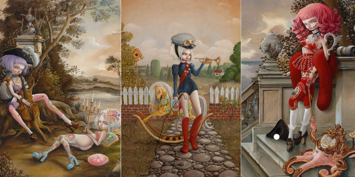 4. You create a unique blend of Pop-Rococo and contemporary surrealism, diverging from its historical roots. How do you balance these two influences, and what aspects of historical Surrealism inspire you? How does your creation of a surreality diverge from that of the traditional Surrealists?