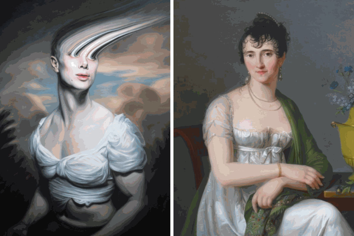 Ashton is obsessed with history in general, finding comfort in the past and appreciating museums as inspiring and meditative places. He focuses on the Regency era and the birth of the British Empire, subverting the concept of celebrity and fame conveyed in portraits of the past through image distortion and the creation of unusually sized portraits that convey insecurity and instability.
