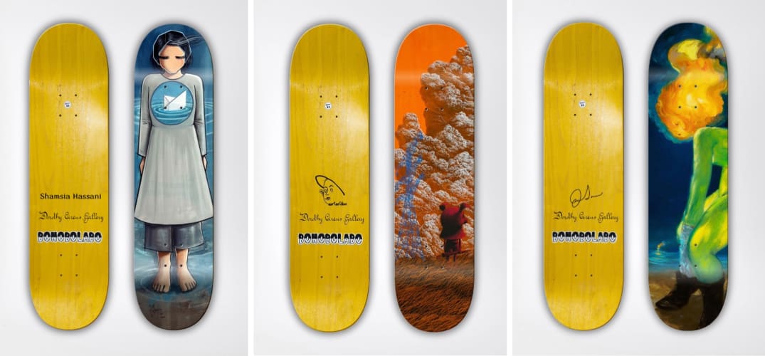 Our collaboration with Italian design house Bonobolabo brought to life a new series of limited-edition skateboardsfeaturing original artworks by Shamsia HassaniGihun Lee, and Joe Sorren. Each edition was accompanied by unique artist proofs with exclusive drawings, merging contemporary art with urban culture.