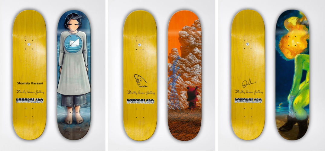 Our collaboration with Italian design house Bonobolabo brought to life a new series of limited-edition skateboardsfeaturing original artworks by Shamsia Hassani, Gihun Lee, and Joe Sorren. Each edition was accompanied by unique artist proofs with exclusive drawings, merging contemporary art with urban culture.