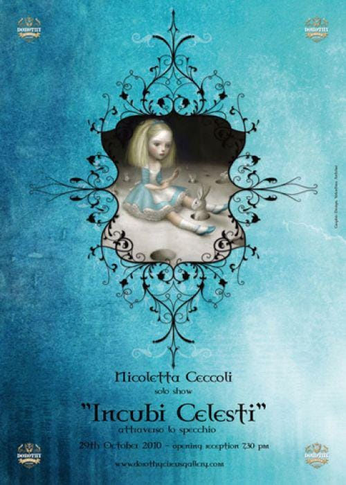Dorothy Circus Gallery, in occasion of its fourth anniversary, brings back on the Italian contemporary art scene the artist Nicoletta Ceccoli with a solo exhibition entitled “Incubi Celesti” (“Heavenly Nightmares”), a tribute to Lewis Carroll’s “Alice in Wonderland”. Nicoletta Ceccoli dedicates her exhibition to the childhood themes that vanish without leaving a trace and to that passage that leads the child into the adulthood. This show is a homage to dreams. Alice becomes the allegory of the Heavenly Nightmares of children that are inhabited by monsters and extraordinary adventures.