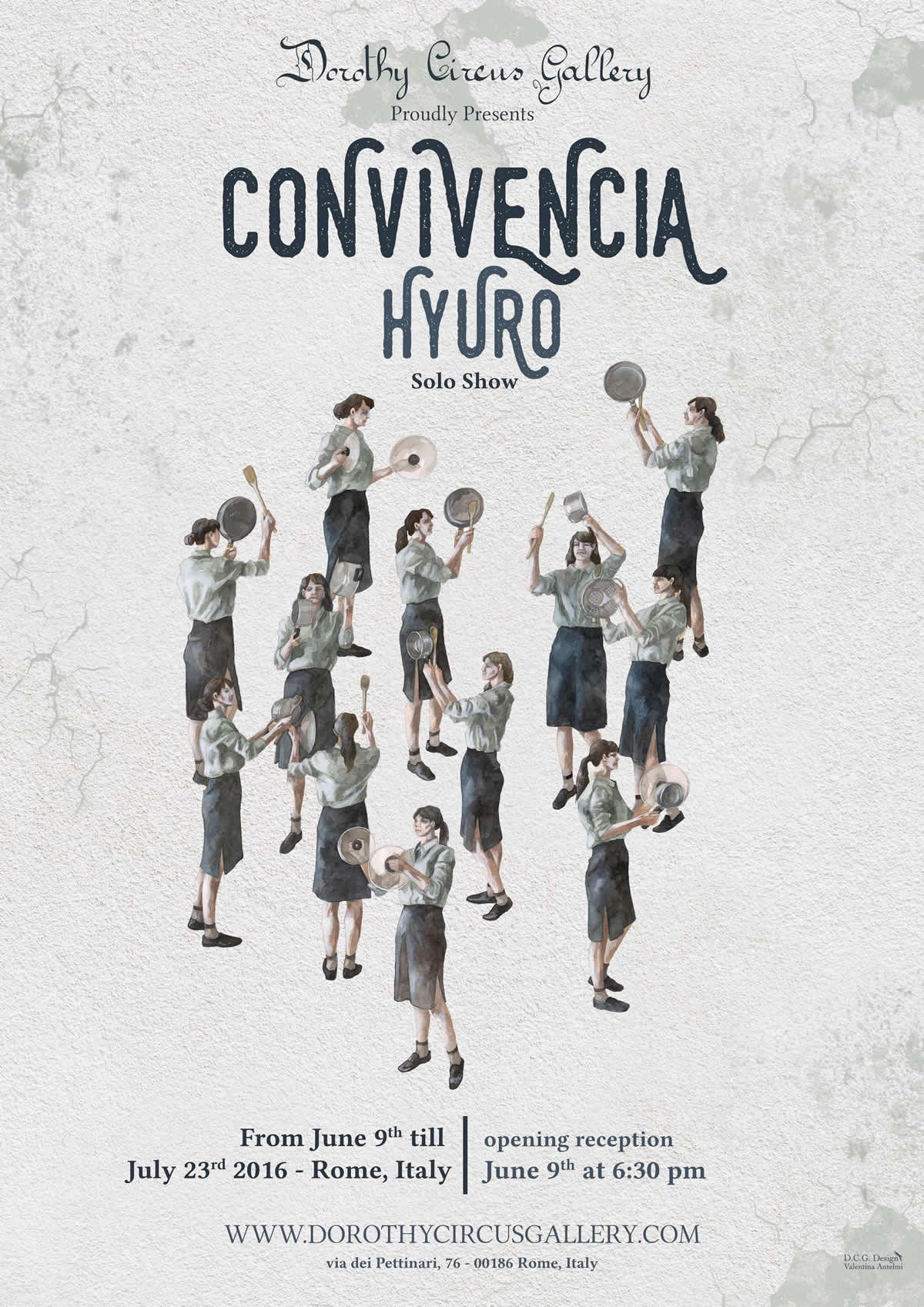 Dorothy Circus Gallery is pleased to present “Convivencia”, the first Italian solo show by the internationally renowned Argentinean street artist Hyuro. On the occasion of this collaboration with DCG, Hyuro will also give birth to a new outdoor mural painting for the city of Rome: the fifth Step of the project Spray for Your Rights, pursued by the Gallery for the last two years. With this Step #5 and her solo exhibition, Hyuro will interpret the theme of reception of coexistence. Through a series of drawings and watercolors, the artist opens a discussion that spots a light on the process of accepting oneself and the others; a discourse that describes both the individual and the collective relationships. In her works, therefore, the characters deal with their own spaces as well as with the shared ones, by visually developing a language that aims at discussing social and psychological themes, which are deeply relevant today. The works created by the Argentinean artist are remarkable for their delicate fusion of socio-political messages and a unique surrealist sensibility. In her dreamlike compositions, a cast of mysterious characters plays a performance that whispers a message, but that, at the same time, always sponsors the viewer’s freedom of interpretation. Hyuro’s imagery is strongly rooted in a personal reflection on people – especially women – in our contemporary society. By scrutinizing these kinds of issues, the artist leads her work further, in order to uproot all the prejudices and stereotypes that are usually associated with males and females in today’s society. This precise, poisonous, and subtle analysis, together with a constantly evolving painting technique, which has turned into an extreme synthesis of delicate grey-like colors. The same tones tend to underline feelings and issues seemingly negative, which can however be turned upside down to go searching for that empathy and human sentiment we too often forget. It is always interesting to notice how Hyuro toils through visual associations, cryptic artworks and frame by frame, where the actions, symbolic objects of this intellectual slavery, become an active part of the reasoning and the ideas dealt with and deepened by the artist.
