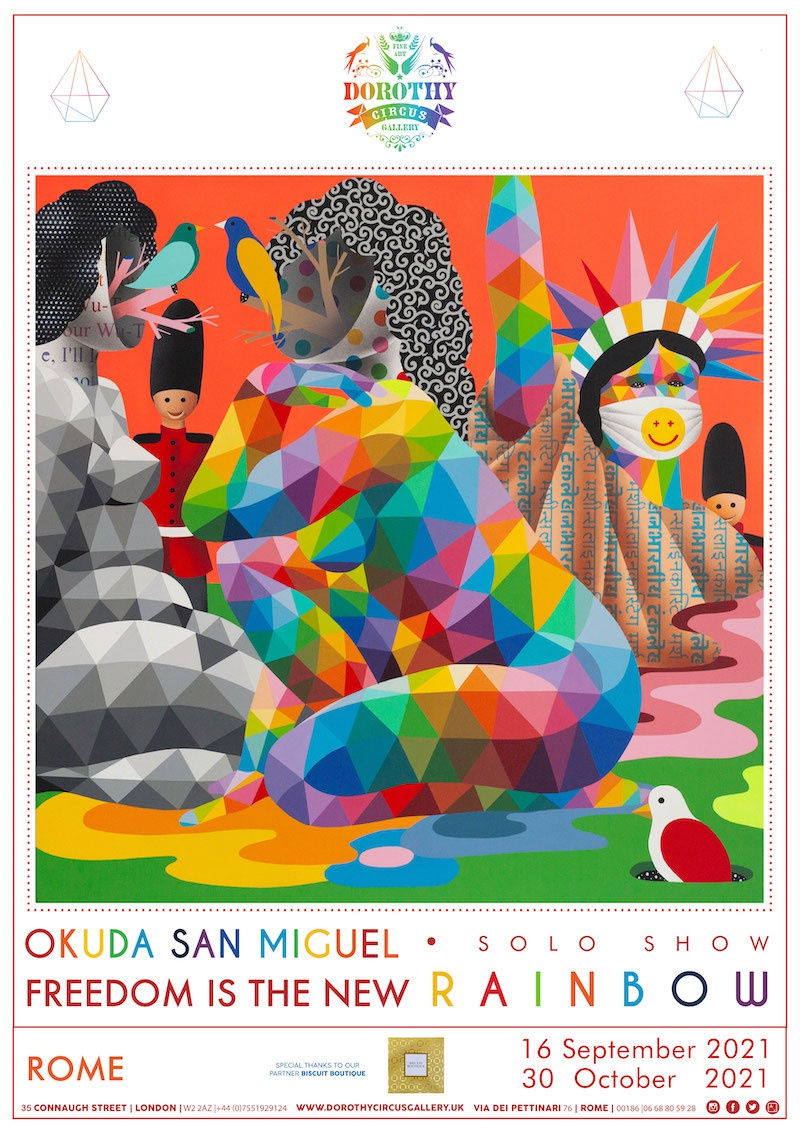 Dorothy Circus Gallery London in collaboration with Ink and Movement is proud to present “Freedom is the new Rainbow”, a solo show by internationally renowned contemporary artist Okuda San Miguel.