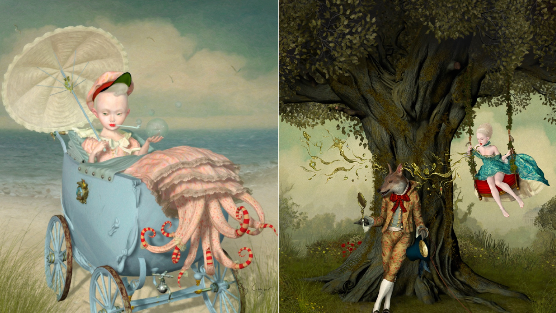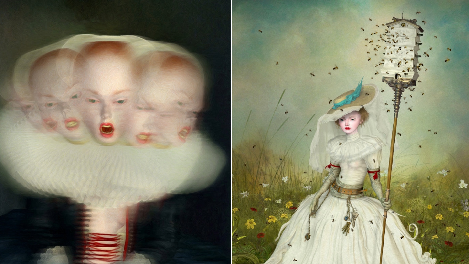 Pioniere assoluto dell’arte digitale, Caesar ha iniziato oltre venticinque anni fa a realizzare immagini che nessuno prima aveva nemmeno osato immaginare. La sua tecnica è digitale, sì, ma nel senso più opposto a quello dell’automazione. È un digitale analogico, artigianale, scolpito con la pazienza e la cura del cesellatore. Caesar modella i suoi personaggi e i loro mondi attraverso Autodesk Maya, software utilizzato per l’animazione 3D. Ma ciò che per altri è uno strumento tecnico, per lui è una casa delle bambole psicanalitica, un teatro interiore in cui le figure si muovono, si vestono, abitano stanze segrete — e infine vengono “fermate” in un’immagine che è una visione.